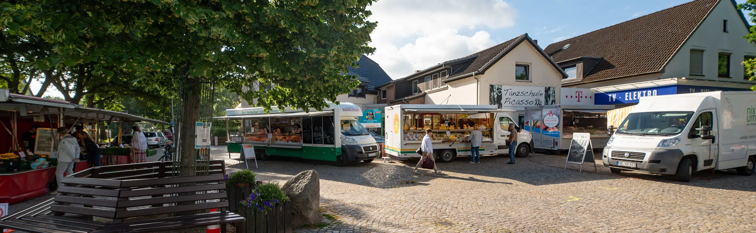 Auf dem Platz zur Linde im Zentrum Borgfelds kommen am Mittwoch und Samstag die Markstände mit einem saisonal wechselnden Angebot zusammen – darunter Obst und Gemüse in Bio-Qualität, Fleisch und Käse, Backwaren und die eine oder andere Wild- und Geflügel-Spezialität.